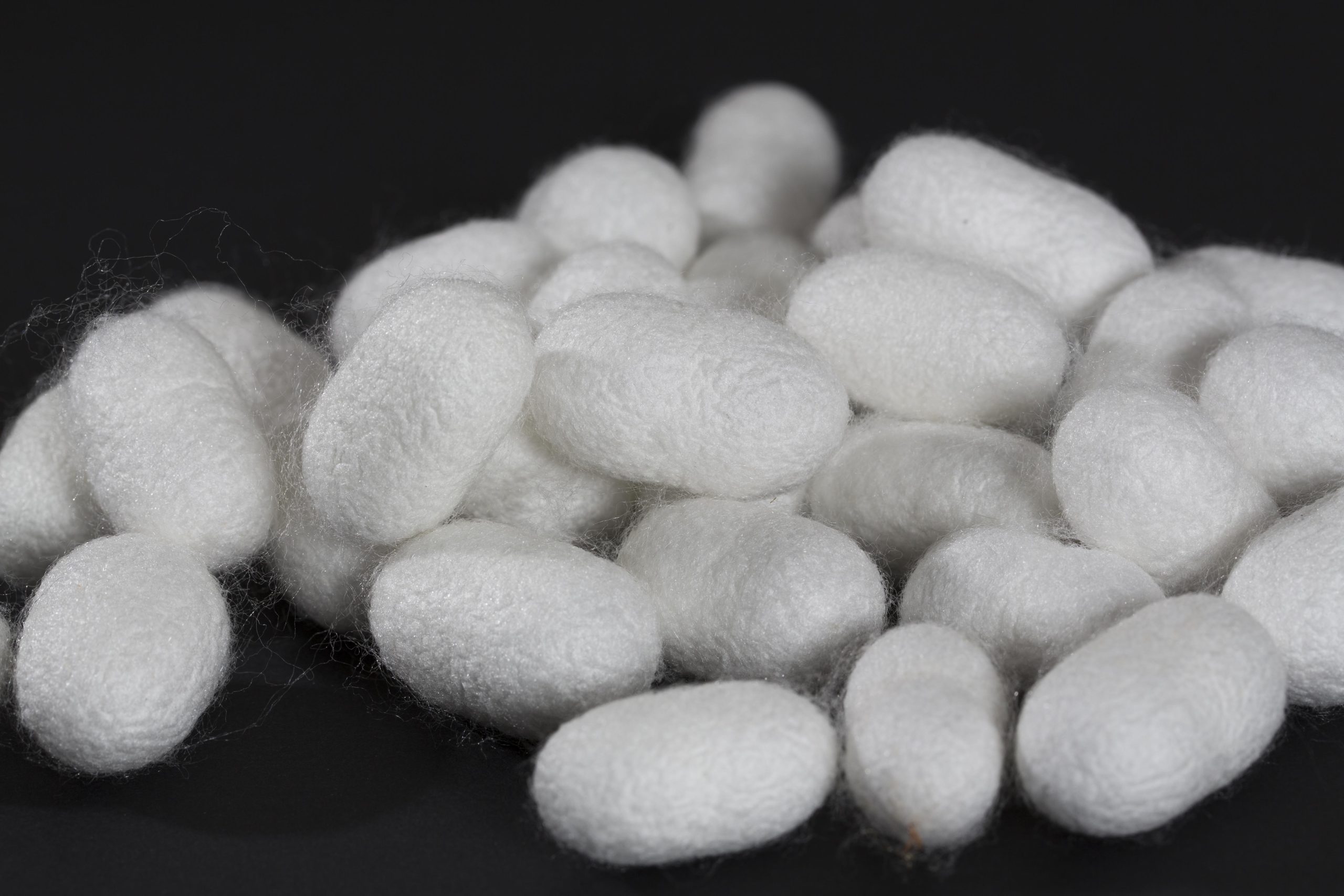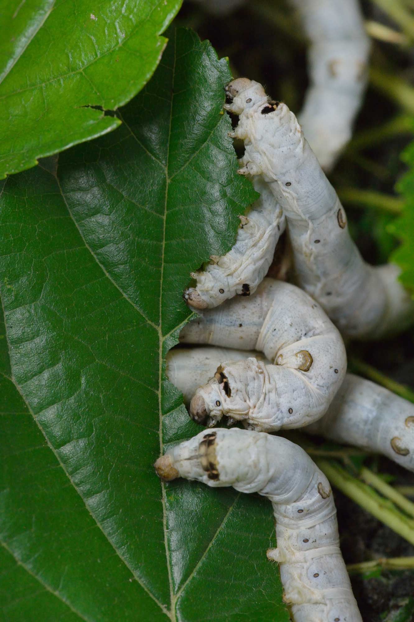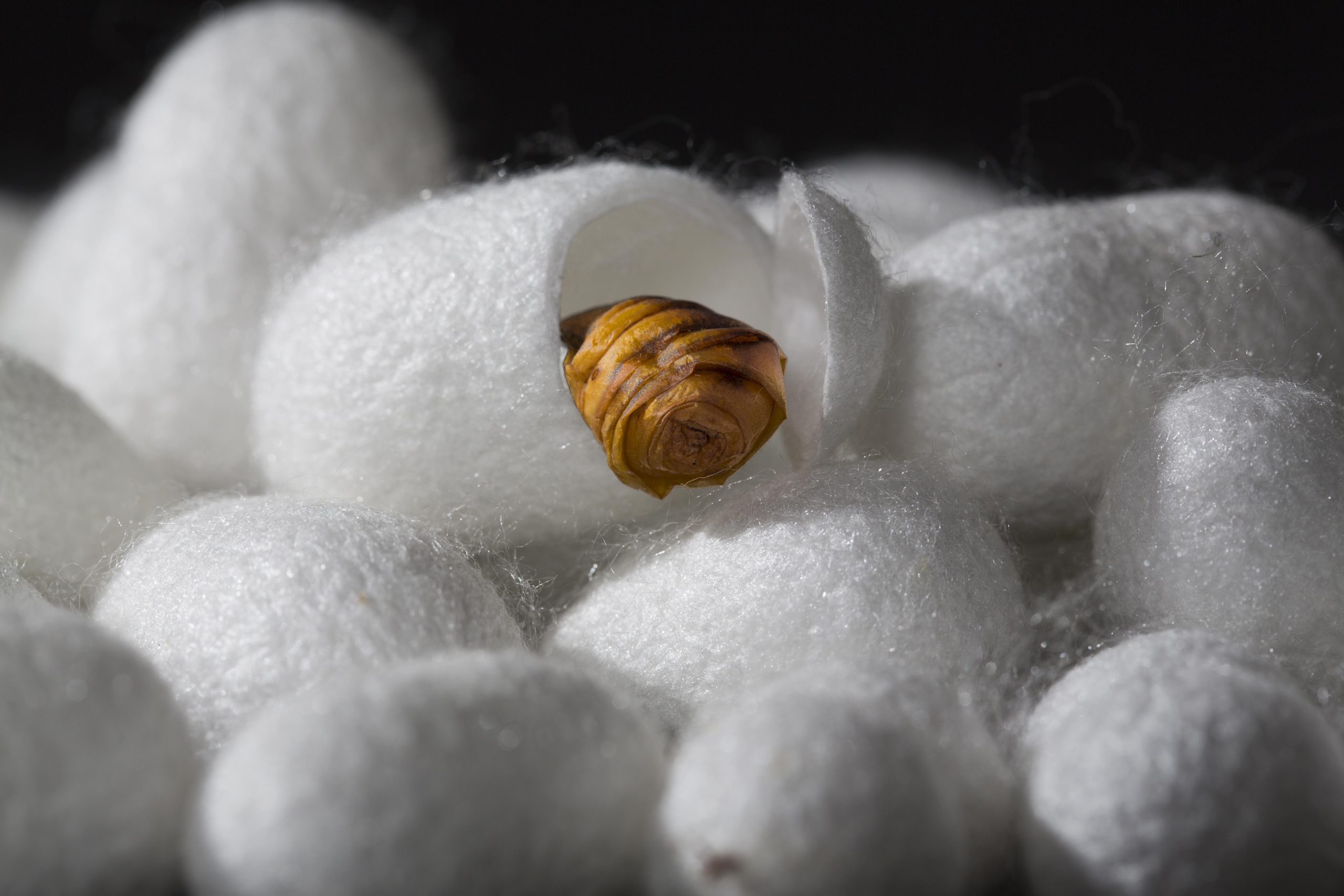 Während der Aufzucht brauchen die Raupen dauernd Futter und intensive Betreuung. Nach einem Monat beginnen sie sich einzuspinnen. Drei Tage dauert das Einspinnen. Die raupe spinnt dabei einen Faden welcher zwischen 600 und 2’000m lang ist. Nach dem Einspinnen kommt die Raupe in die Metamorphose. Den Umwandlungsprozess zum Falter unterbrechen wir, indem wir die Kokons ernten und abtrocknen. Der Kokon enthält also noch eine Puppe.